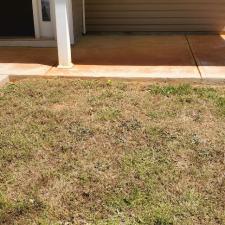 The rear of this home was covered in mold, algae, mildew, and lichen. Most of the house took two applications to complete the project. The front porch was an add-on. The red clay dirt stain was removed with acid.